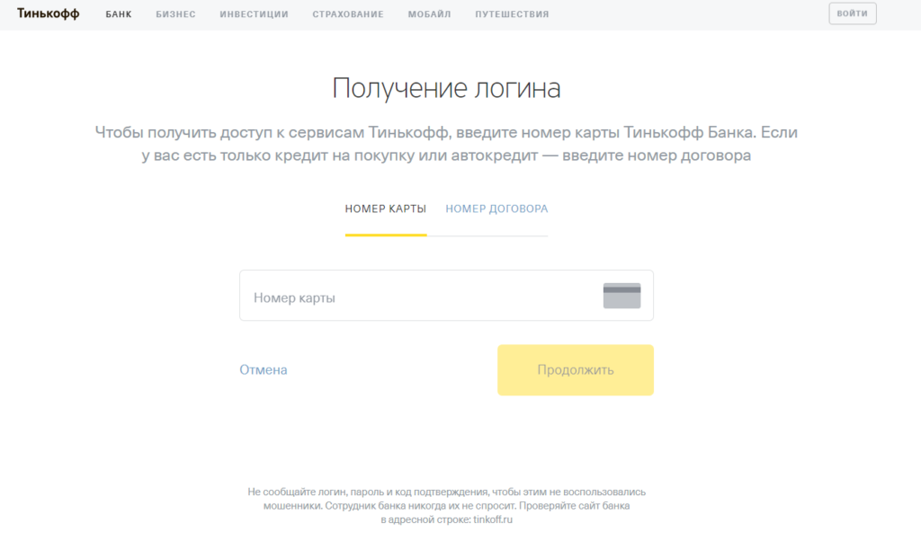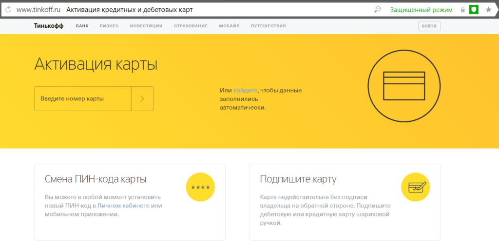 Активация карты банка Тинькофф с помощью интернета