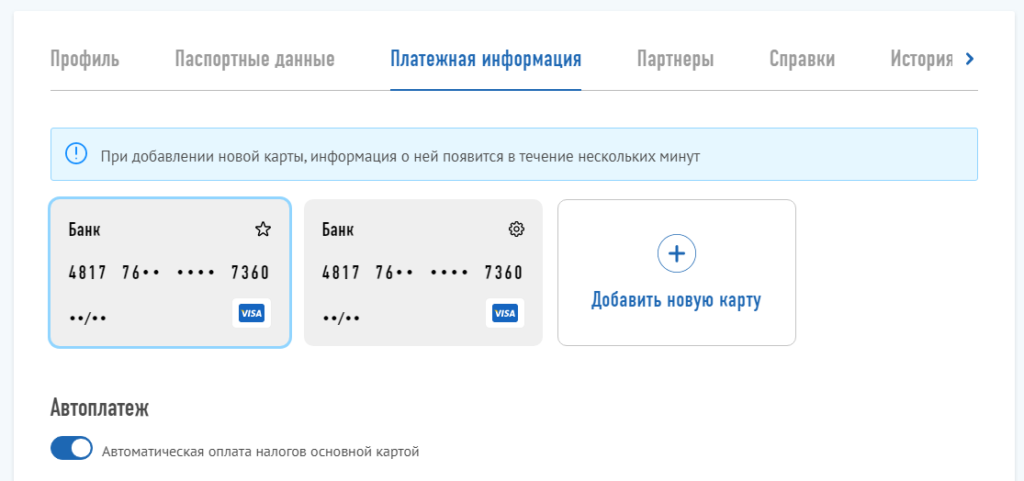 Платить налоги можно в любом банке, но проще это сделать в том же приложении «Мой налог». Для того, чтобы платеж списался со счета налогоплательщика, то есть с карты, которая установлена в приложении как основная, необходимо проверить в настройках в разделе «Платежная информация» напротив «Кнопка автоплатежа».