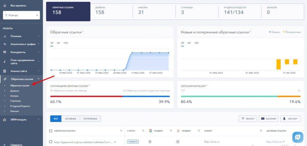 Даст возможность узнать, какие ресурсы ссылаются на ваш блог. В SE Ranking для этого надо зайти в соответствующую вкладку. Таким образом, сумеете определить, какие ссылки активны (есть переходы), а какие не приносят пользы.