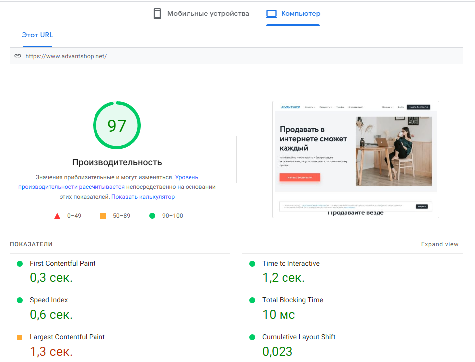 Аудит Сайта > Внутренние страницы > Производительность.
