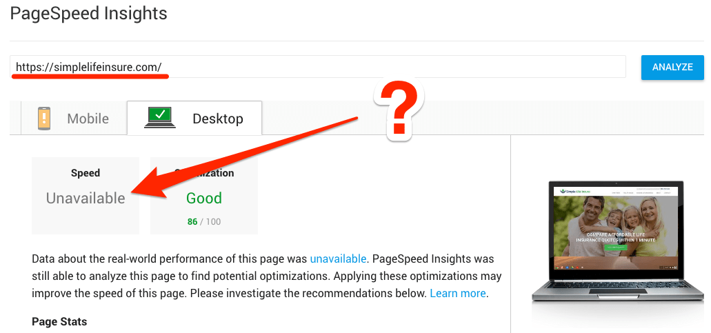 Ой, «Оценка скорости загрузки недоступна». Отлично… На самом деле нет.