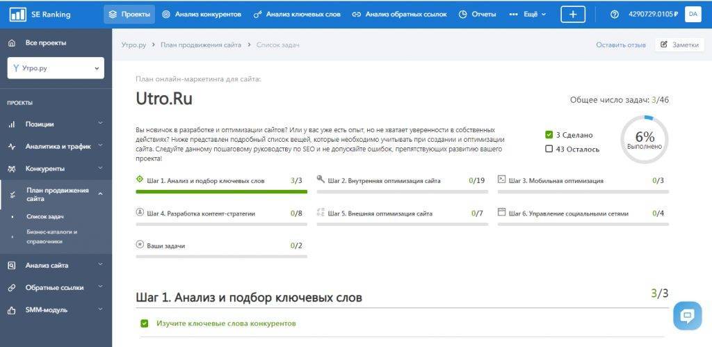 Комплексный сервис модуль ведения проектов проводит глубокий онлайн-аудит сайта, анализирует техническую часть и SEO-параметры, отслеживает динамику позиций, находит технические ошибки, позволяет получать актуальные рекомендации.