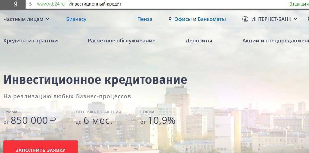 | Бизнес-Инвест | От 3 000 000 | От 11% | До 120 месяцев |