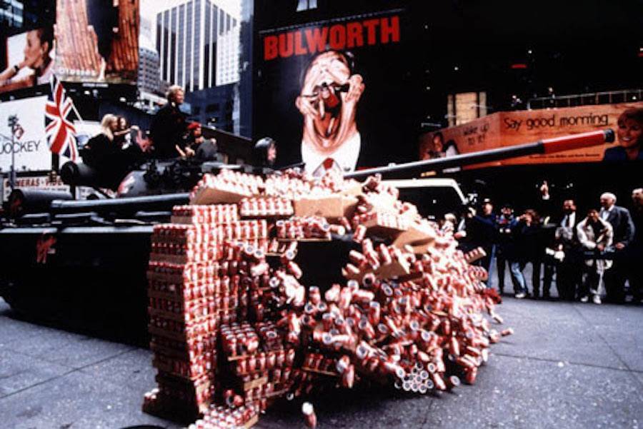 Чтобы привлечь внимание к новому напитку, бизнесмен проехал на танке по трем тоннам банок Coca-Cola на Таймс-сквер в Нью-Йорке и сделал вид, что стреляет из пистолета по вывеске конкурента. Вывеска была заранее заминирована, поэтому выстрел выглядел правдоподобно