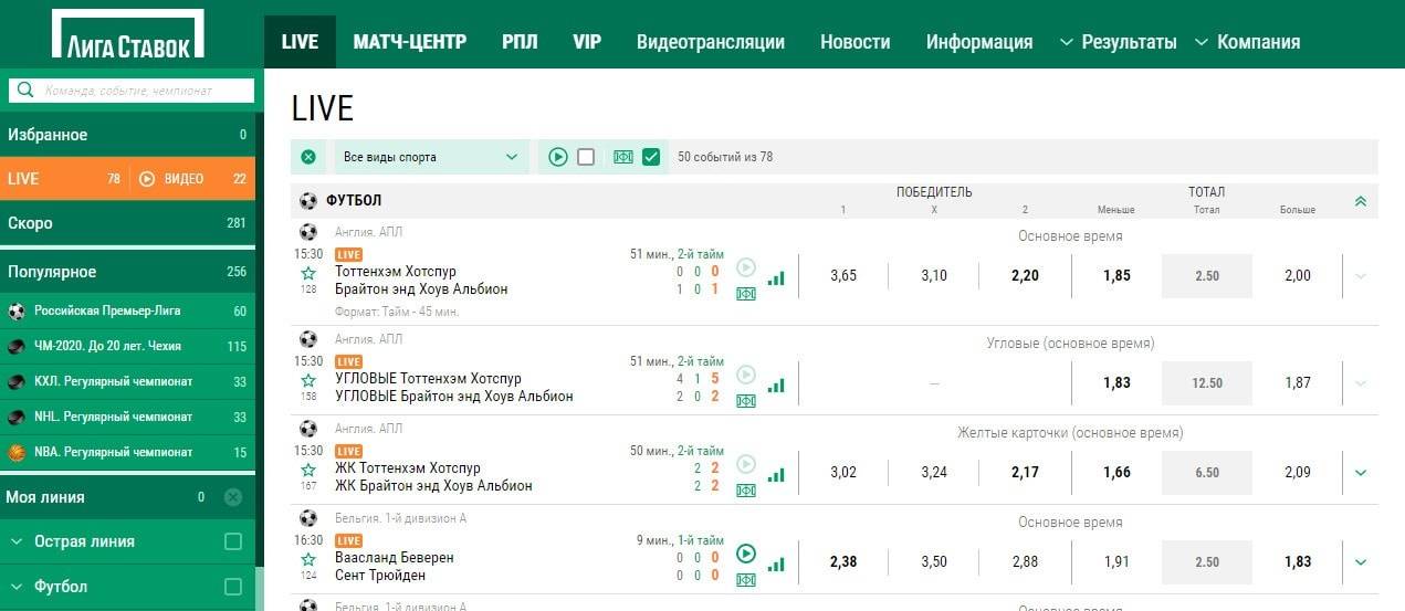 Ставки Лайв охватывают временной промежуток от начала до конца матча. Для