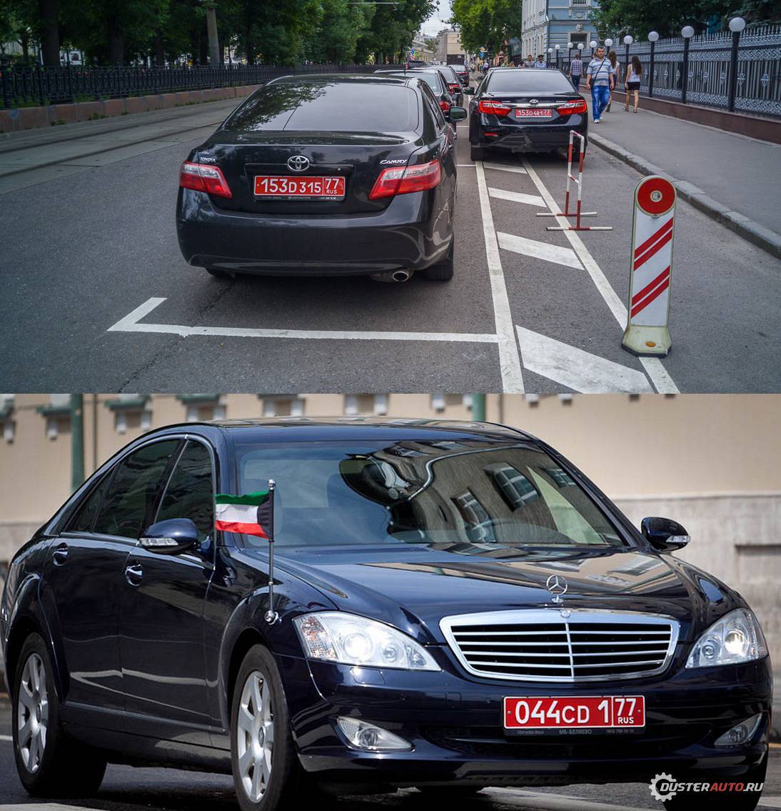 Лица, имеющие право перемещаться на таких авто, владеют привилегией неприкосновенности — российская полиция не имеет право их арестовывать или задерживать.