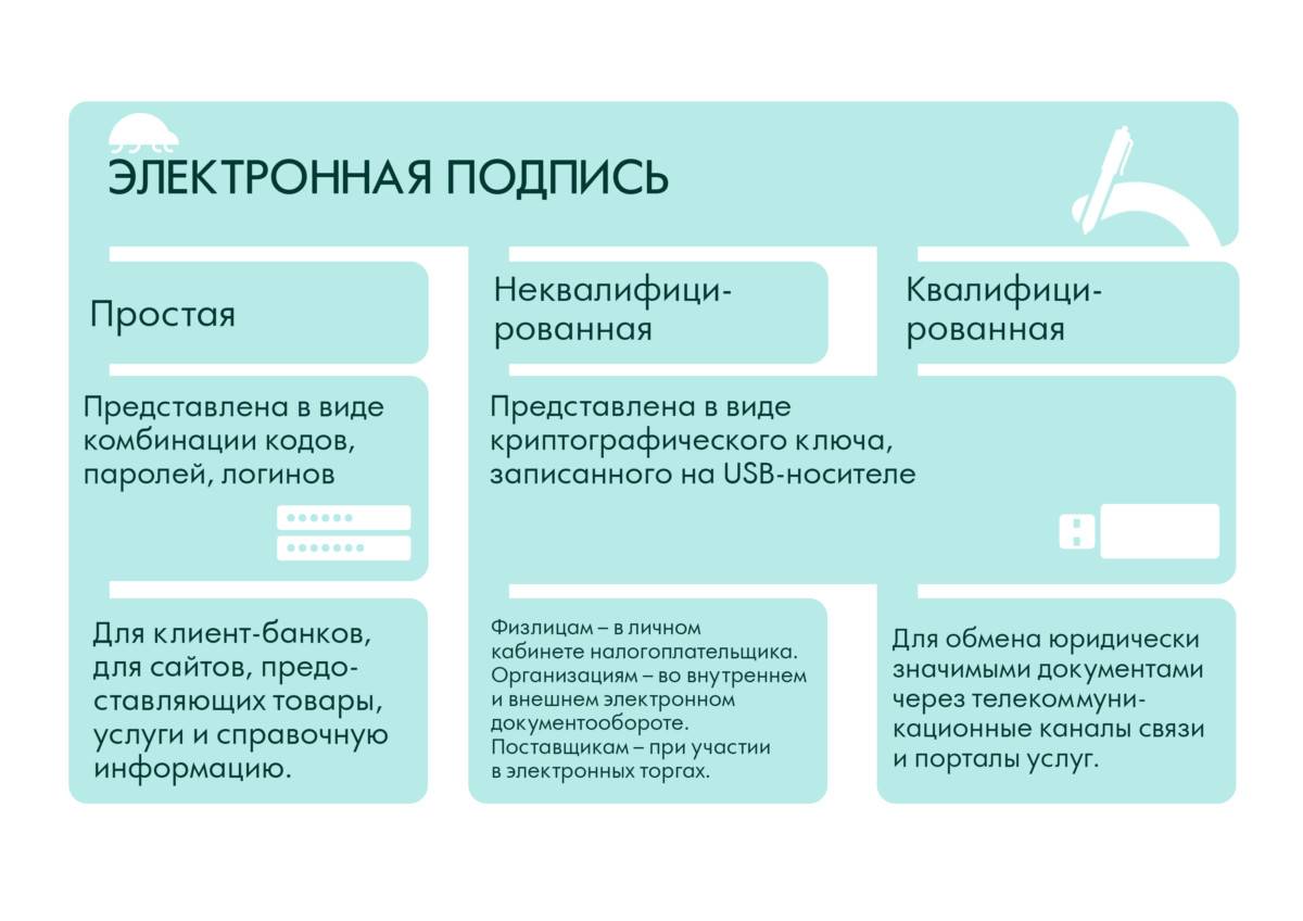 Электронная подпись на документе — это аналог собственноручного автографа, оставленного на бумажном носителе. Закон №63-ФЗ определяет два вида электронной подписи (ЭП):