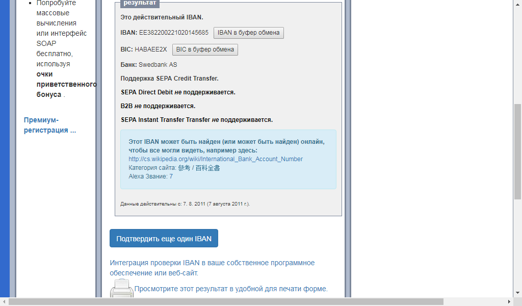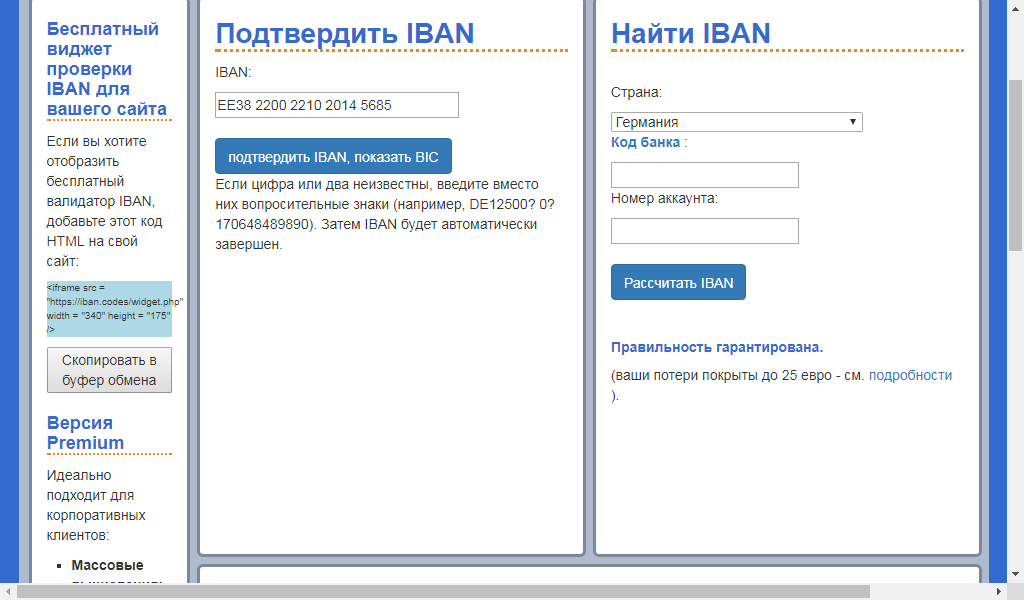 В интернете также можно поверить правильность IBAN-code на сайте www.ibancalculator.com.