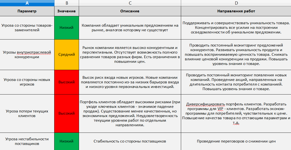 Теория Портера сводится к расчету: внутренние + внешние угрозы – результат противодействия.