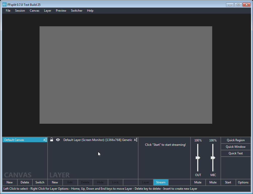 Эта программа подходит только для пользователей, которые уже работали с подобным софтом. У нее богатый функционал, но интерфейс совсем не дружелюбен. Кроме того, она есть только на английском. Зато она бесплатная, так что вы можете использовать пробный период XSplit Broadcaster, разобраться во всех функциях и возможностях таких программ, а затем перейти на бесплатный FFsplit.