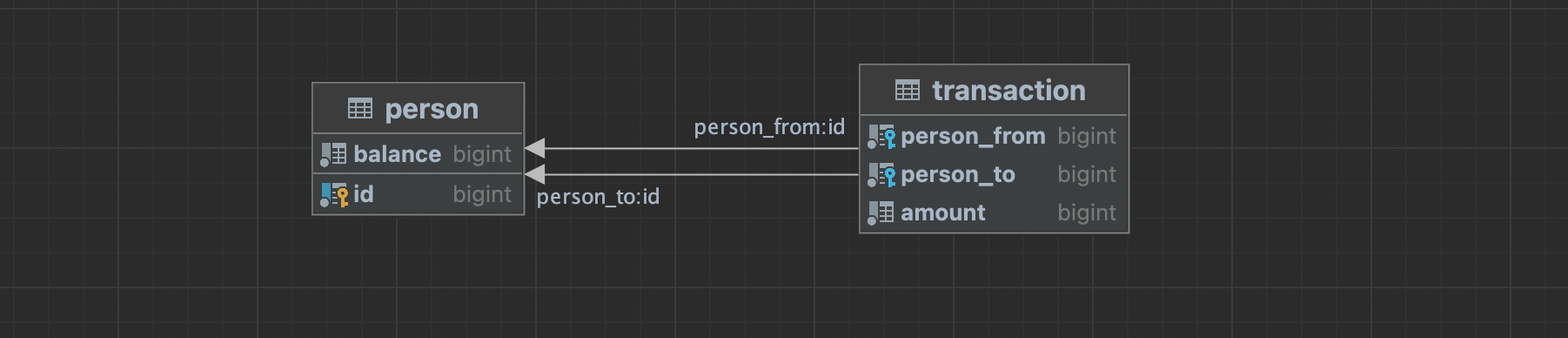 И мы хотим сделать перевод между первым и вторым пользователем 2. Других пользователей у нас в системе нет.