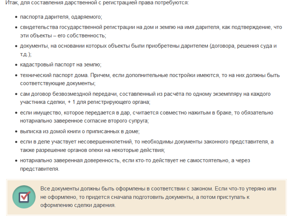 Какие нужны документы на дарственную дома?