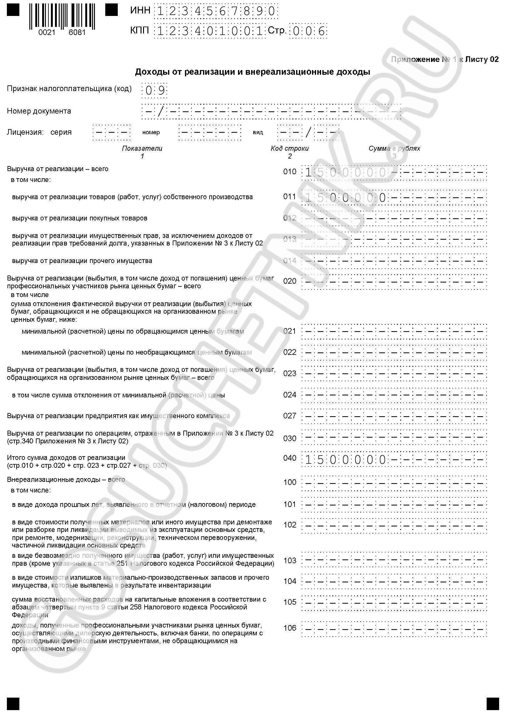 В этом приложении расшифровываются доходы налогоплательщика — доходы от реализации и внереализационные доходы. Все показатели в нем нужно указывать без учета самостоятельных корректировок, произведенных по операциям со взаимозависимыми лицами и приведенных в листе . Рассмотрим порядок заполнения показателей этого приложения.