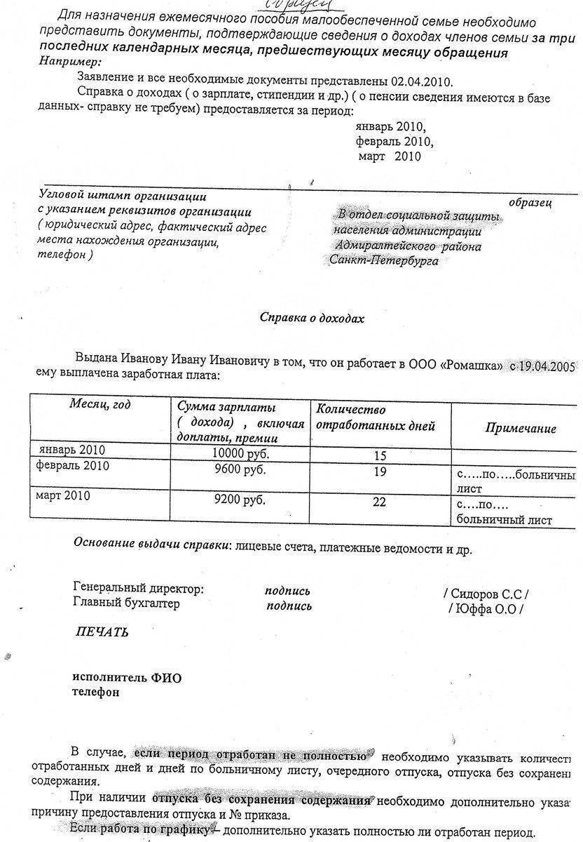 Причем некоторые подразделения соцзащиты имеют свои требования к справкам. К примеру, в некоторых учреждениях требуется, чтобы сведения о доходах были составлены в виде списка, а в некоторых — в виде таблицы. Работник должен уточнять эту информацию самостоятельно, в противном случае справка может быть возвращена на доработку.
