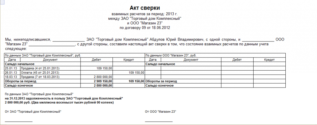 «Акт сверки взаимных расчетов»