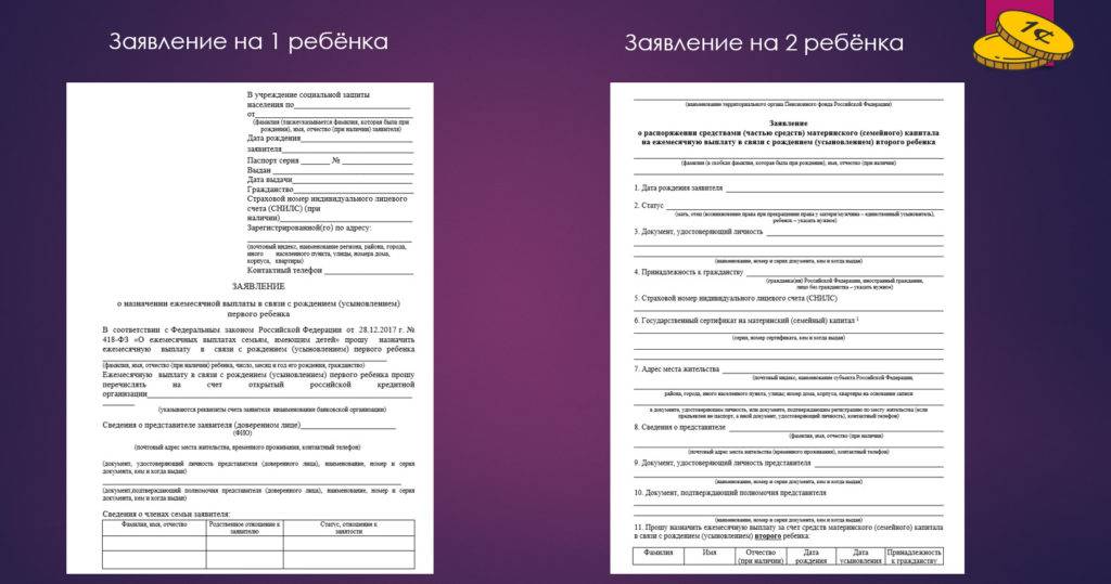 Поэтому и заявления на первого ребёнка и второго будут разные:
