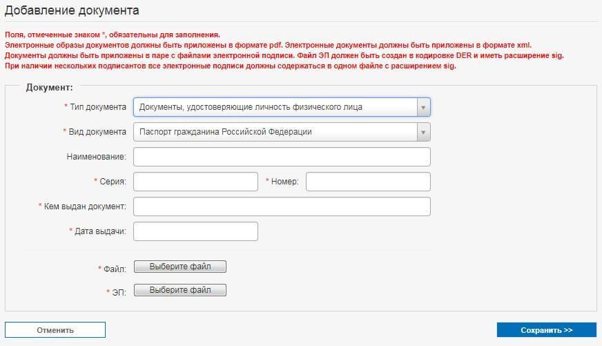 В процессе заполнения заявки необходимо указать сведения, загрузить сканы документов, их электронные версии, а затем отправить обращение.