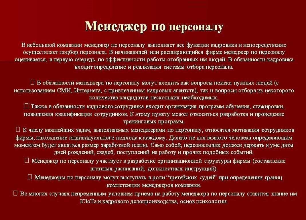 Теперь у вас должен сформироваться образ менеджера по персоналу: