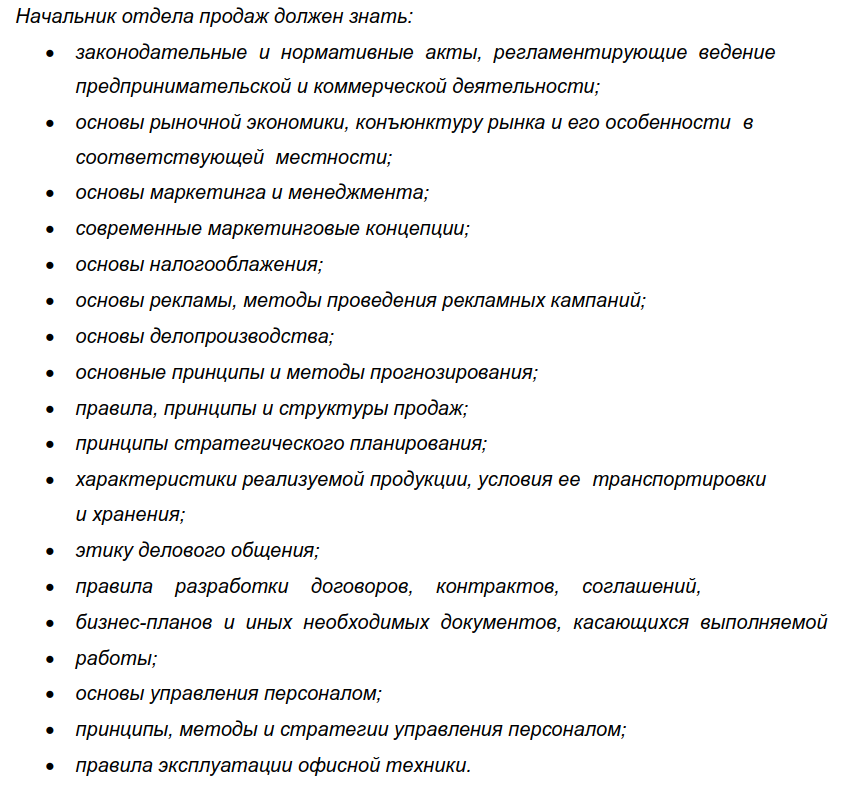 В зависимости от ситуации можно включить в ДИ и другие обязанности, но важно соблюсти баланс и не превращать руководителя службы продаж в некоего «универсального солдата», т. к