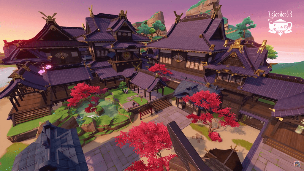 RielleB вновь здесь с потрясающими планировками Инадзумы, чтобы поделиться с нами, Путешественниками. Этот дизайн включает в себя главный дом Инадзумы, включая Табби! То, что мы не часто видим. Вы найдете внутренний двор с прудом с рыбками, различными зданиями Инадзумы и многим другим.