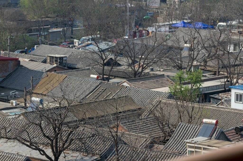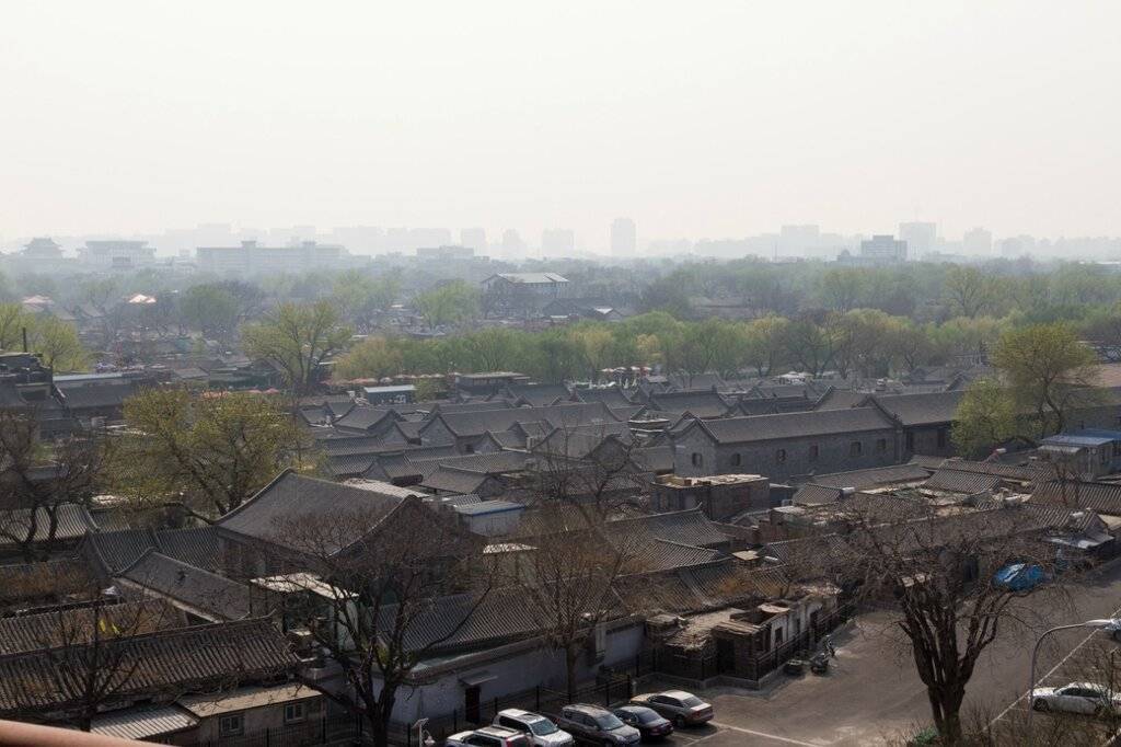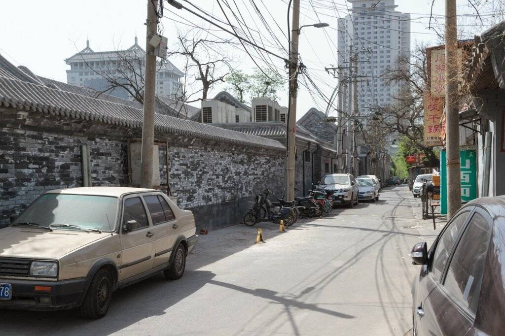 Старые кварталы традиционной застройки соседствуют с современными многоэтажными домами. В районе улицы Фучэнмэнь, Пекин