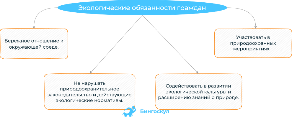 Наравне с государственным контролем благоприятной обстановки окружающей среды, граждане по Конституции РФ и законодательству также имеют экологические обязанности – закрепленные в нормативно – правовых документах требования, которые обязательны к исполнению.