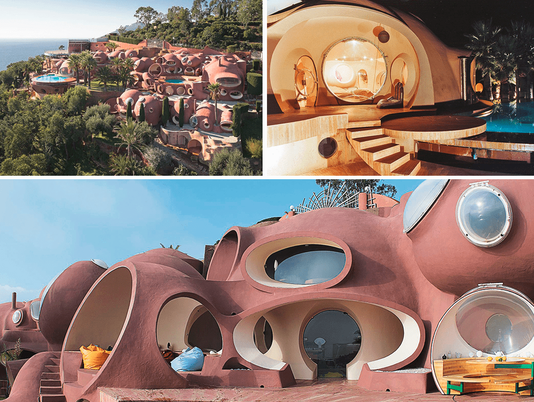 Дворец пузырей — это один из самых необычных особняков в Европе, который по совместительству является одним из самых дорогих. После смерти владельца Пьера Кардена, дизайнера высокой моды, работавшего в футуристическом стиле, особняк был выставлен на продажу. Необычная вилла является комплексом из нескольких округлых зданий, расположенных на холме на шести уровнях. Комплекс состоит из 10 спален и 11 ванных комнат, и имеет площадь 1200 квадратных метров.