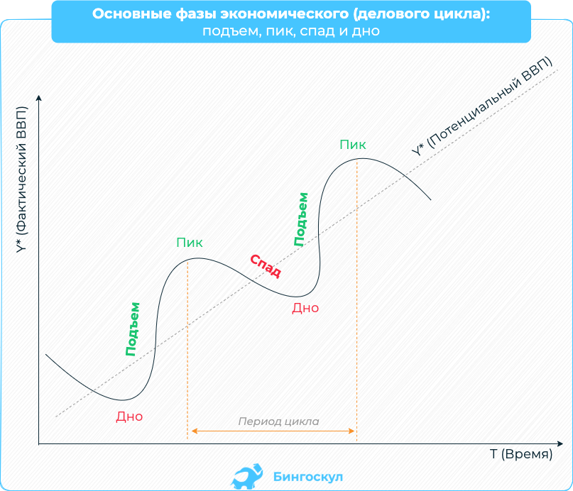 Пик – полное использование человеческого капитала, расширенное производство, увеличение доходов.