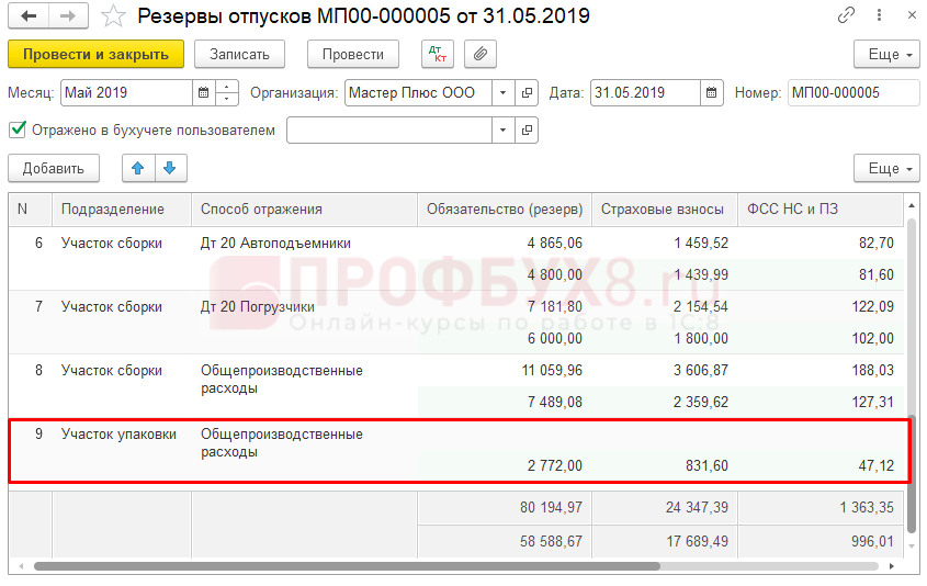 Формирование проводок по списанию отпуска за счет резервов в 1С Бухгалтерия