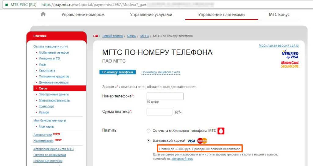 Среди преимуществ, открытых для клиентов оператора МТС, можно отметить возможность проведения платежа посредством банковской карты. Если выбирается подобный метод оплаты, потребуется выполнить такие шаги: