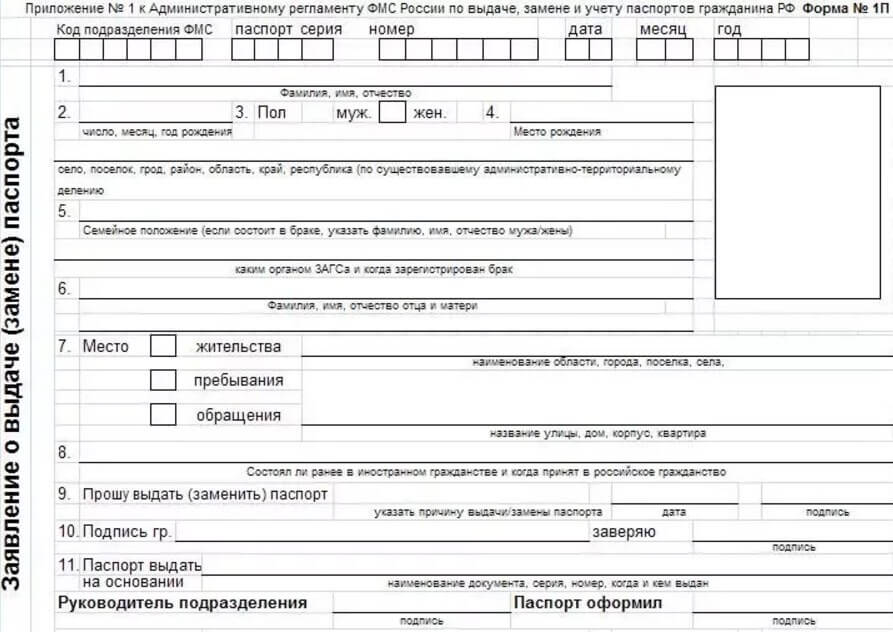 Бланк на замену паспорта
