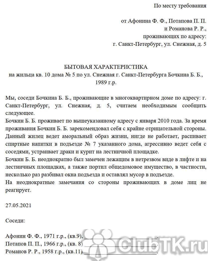 Характеристика от соседей в суд