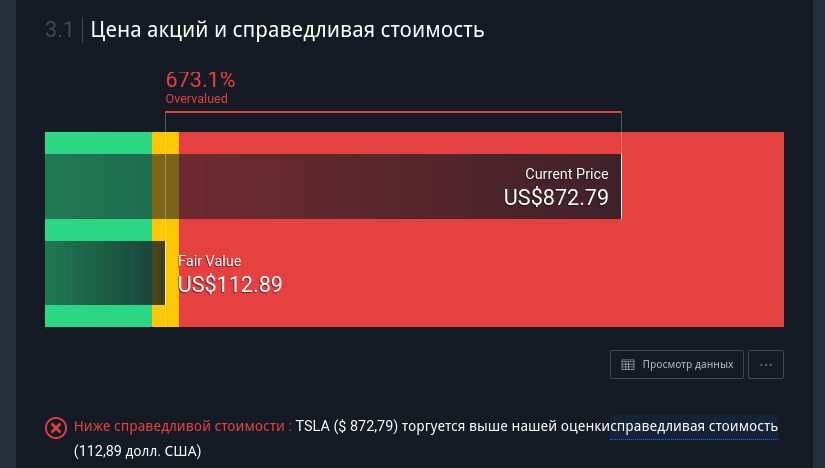 Вот как выглядит график справедливой стоимости акций Tesla: всего лишь 671 % перекупленности.