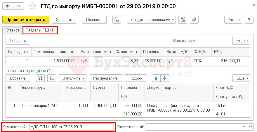 ГТД по импорту в 1С 8.3 Бухгалтерия