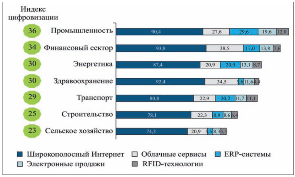 Индекс цифровизации и интенсивность использования цифровых технологий. Доля организаций, использующих цифровые технологии, %