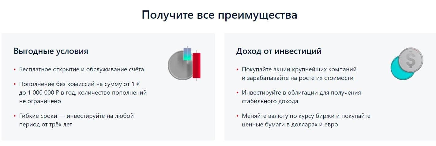 Сразу после пополнения вкладчик может покупать и продавать ценные бумаги российских и зарубежных компаний, а также государственные облигации ОФЗ и другие активы. На этом можно заработать, поскольку: