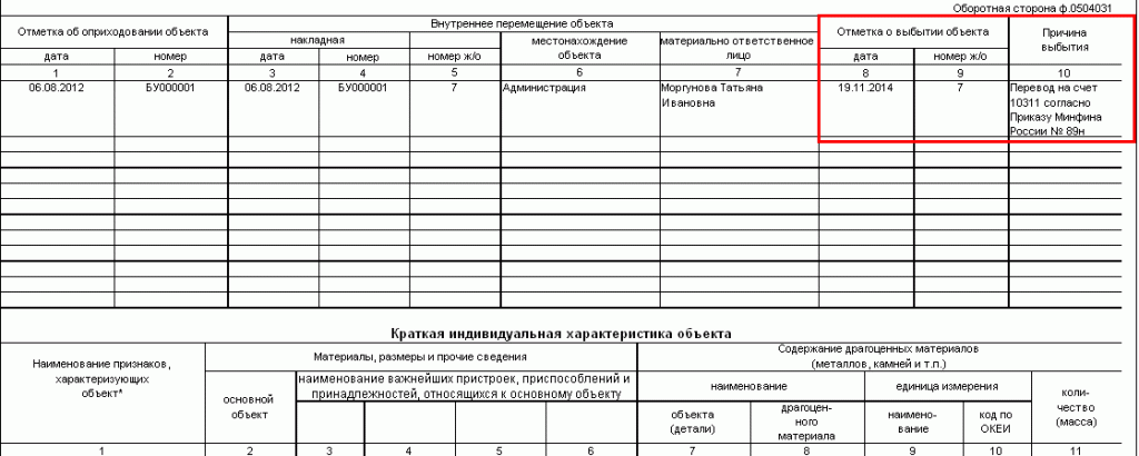 Это позволит формировать инвентарную карточку по счету 01 за прошлый период и по счету 103 00 за текущий и последующие периоды.