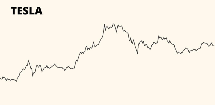Котировки акций Tesla (07.07.20 – 07.07.21). На графике видно, как сильно изменялась цена в течение года. При этом итоговая годовая доходность составила +135%. Это значительно выше рыночной доходности.