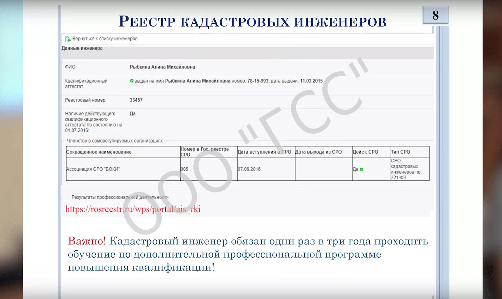 Важно! Любой кадастровый инженер обязан раз в три года проходить обучение по дополнительной профессиональной программе повышения квалификации!