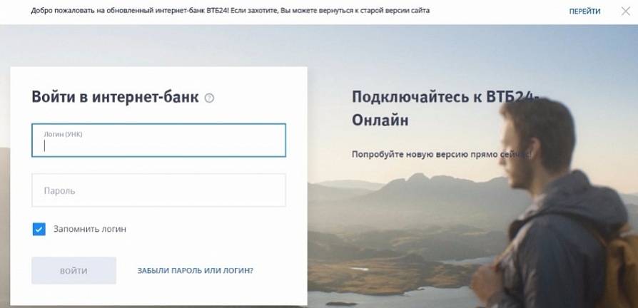 Сегодня самой удобной и доступной является активация пластиковой карточки через интернет в личном кабинете. Для этого необходимо в строке браузера ввести https://online.vtb.ru/, откроется главная страница личного кабинета в защищенном режиме, где следует произвести ввод логина (УНК) или номера карты и подтвердить действие нажатием клавиши «Далее». После производится ввод пароля и подтверждается нажатием клавиши «Войти».