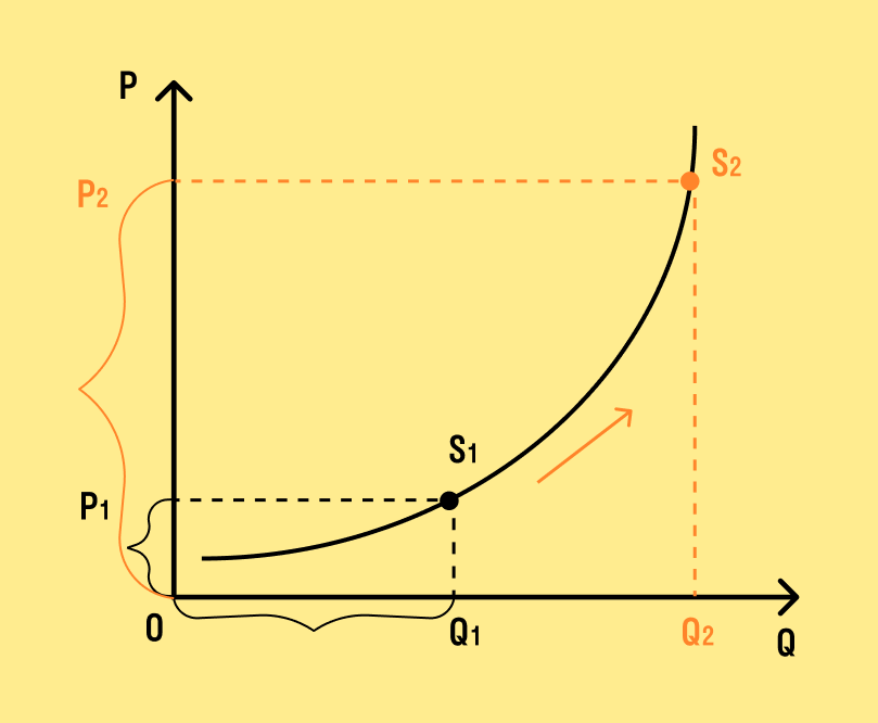 Графическая зависимость между ценой и объемом предложения получила название кривой предложения S.