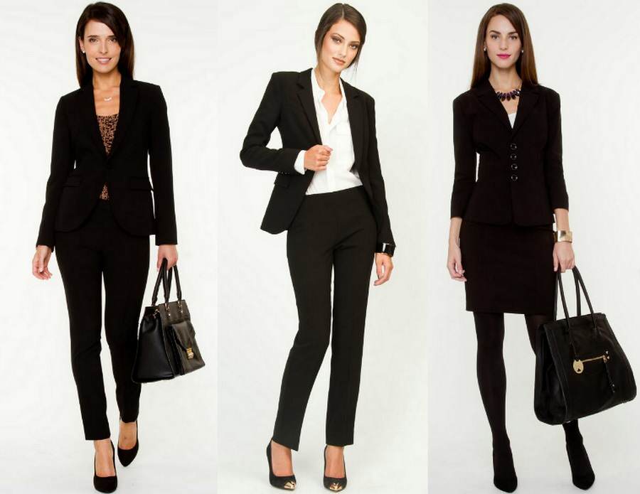 - Каждому третьему менеджеру по персоналу или 33% нравятся строгие деловые костюмы темных цветов и оттенков с белой блузкой, как на фото ниже. При этом открытой обувью и ярким педикюром девушка может все безнадежно испортить. Также треть кадровиков считает, что отсутствие аксессуаров лучше, чем их обилие. Это пожелание относится к тем, кто хочет устроиться на руководящие должности.