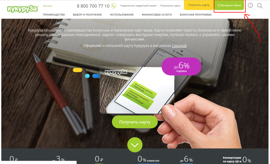 Достаточно войти в Кукуруза-онлайн: личный кабинет и электронная карта Кукуруза превратится в универсальный мобильный финансовый инструмент, аналогов которому нет в России.