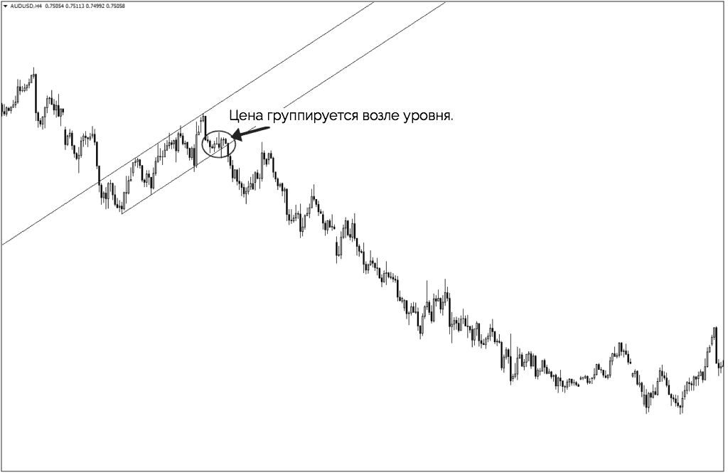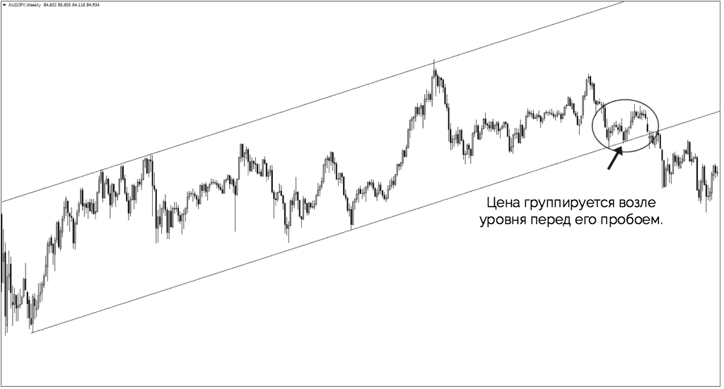 Последний признак потенциального пробоя — это движение цены вблизи ключевого уровня. То есть рынок начинает оказывать постоянное давление на ключевой уровень в течение короткого периода времени. Это верный признак того, что вскоре случится пробой, и тренд развернется.