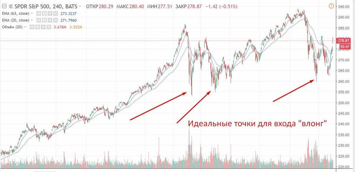 Однако важно играть в соответствии с трендом. Поэтому должно возникнуть дополнительное условие – 200-дневная скользящая средняя должна указывать на растущий тренд