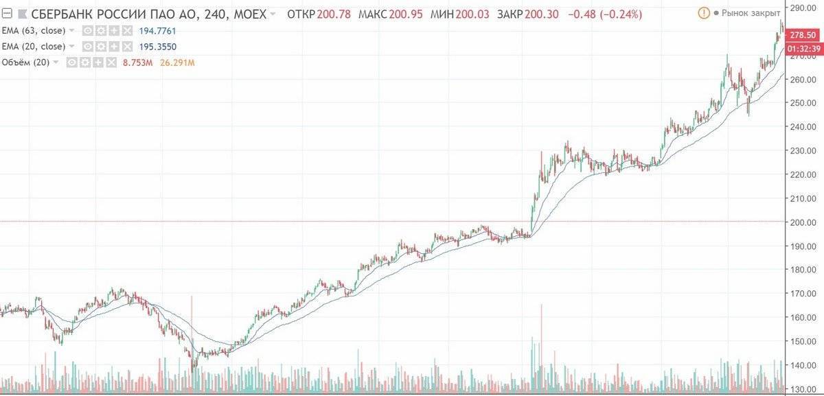 EMA – отличный способ распознать преобладающие тенденции на любом временном горизонте. В этой стратегии используются: