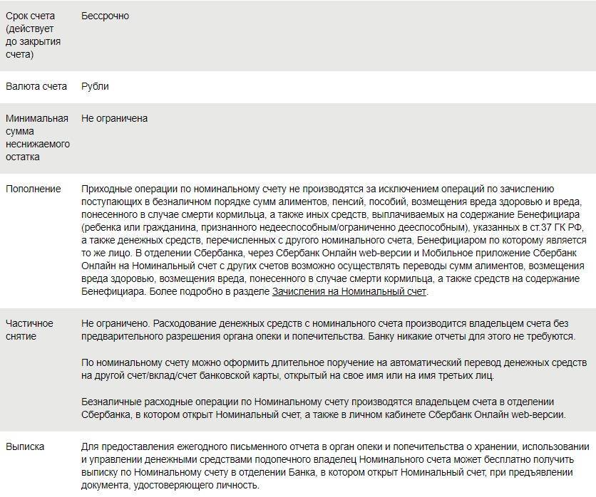 Номинальный счет на несовершеннолетнего ребенка в Сбербанке открывается на следующих условиях: