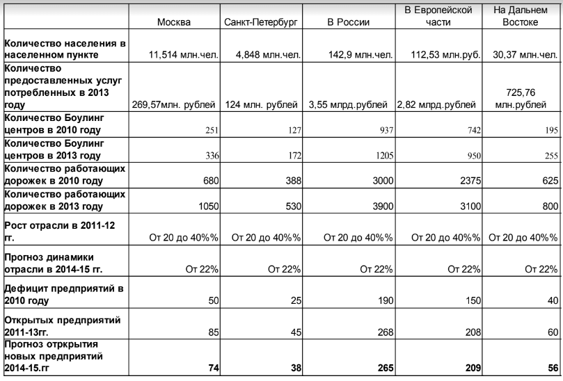 Оперируя полученными данными, можно составить достаточно точную картину о доходности конкурентов, а также разработать собственный бизнес-план боулинг клуба, учитывая сильные и слабые стороны действующих заведений.