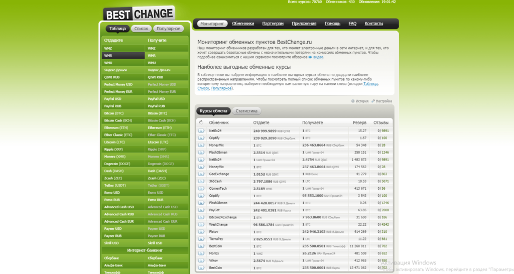 Название этого агрегатора – Bestchange. Система проводит тщательный отбор обменников, чтобы пользователи не набрели на мошенников. Администрация данной площадки постоянно проводит мониторинги обменных систем