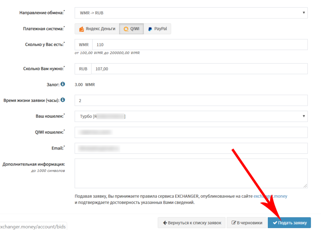 Порядок действий, как перевести средства через обменники с WebMoney на QIWI: